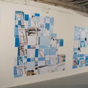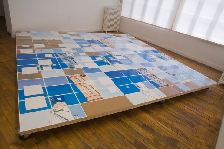 Tout le travail plastique consiste à exploiter cette photographie selon une trame géométrique traitant le multiple.